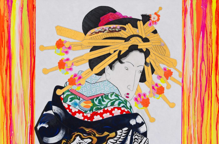 Mario A “Gogh, Kiyoshiro & Me (Summertime Blues – Tokyo 2020)” oil on canvas, 200 x 103 cm, detail, 2016